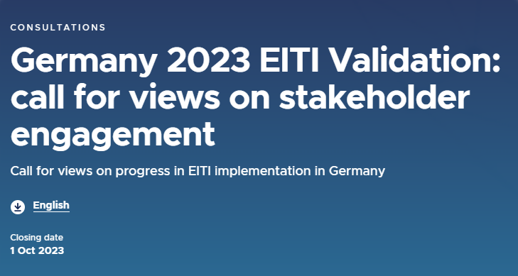 „Die Regierung muss eine eindeutige öffentliche Erklärung abgeben, dass sie beabsichtigt, die EITI umzusetzen. Die Erklärung ist vom Staats- oder Regierungsoberhaupt oder einem ordnungsgemäß bevollmächtigten Regierungsvertreter abzugeben“ (EITI-Anforderung 1.1 b.)
